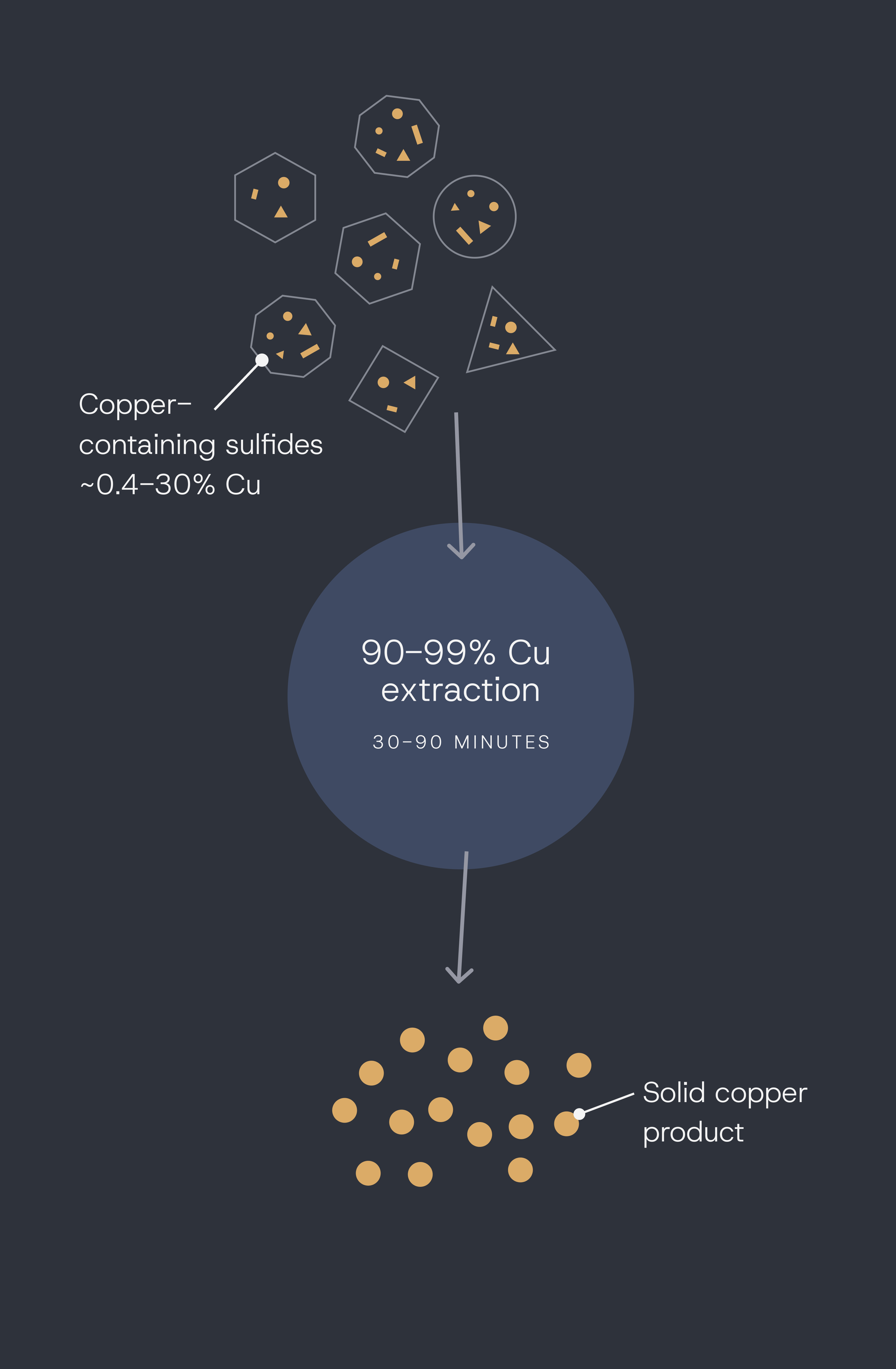 While there’s enough copper in the ground to satisfy this growth, multi-decade permitting timelines, geopolitical risk, declining ore quality, and environmental issues will threaten to cause major shortages and disrupt the copper supply chain when it’s needed the most. The only way forward is to get more copper out of the ground as fast as possible. The future of copper needs to be safer and easier to permit, more efficient, and more robust to process a wide range of copper sources.
